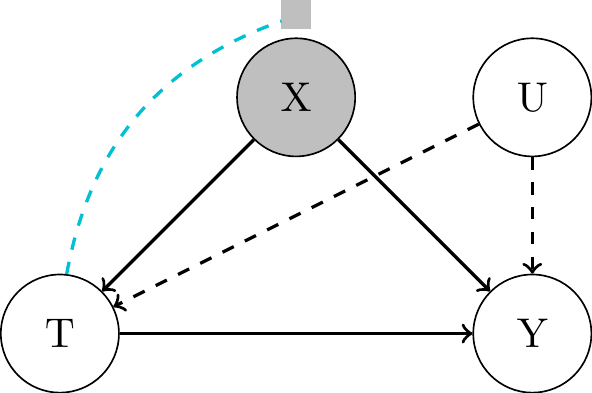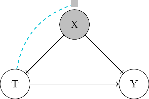 • Difference to randomized experiments: \(\mathbf{X_i}\) may affect \(T_i\), i.e. \(\text{Cov}(T_i, \mathbf{X_i}) \neq 0\)